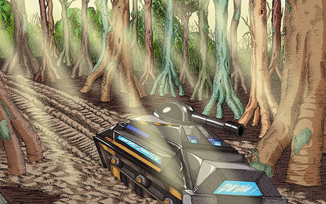 I was commissioned by scifi novelist EAE Gerber to create illustrations for his ongoing "A Chronicle" book series. In the first volume I used only colored pencils to create an atmosphere similar to classic scifi illustrators of the 70s and 80s. In "A Chronicle, Volume II" I decided to try using ink and digital coloration inspired by the scifi illustrator and comic artist Jean Giraud, aka Moebius.